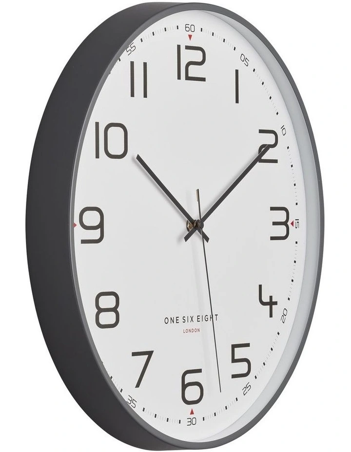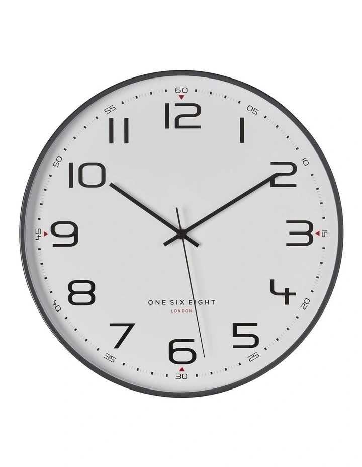 A contemporary classic, with a simple design and an easy-to-read face. Thanks to the stark black-and-white dial and futuristic-style 5-minute markers, this wall clock would sit well in an edgy, minimalist space. The clean-cut look is masculine and modern – just perfect for pairing with sleek, glossy kitchen decor. And with a silent sweep there’s no distracting sound so it’s also the ideal timepiece for a home office.