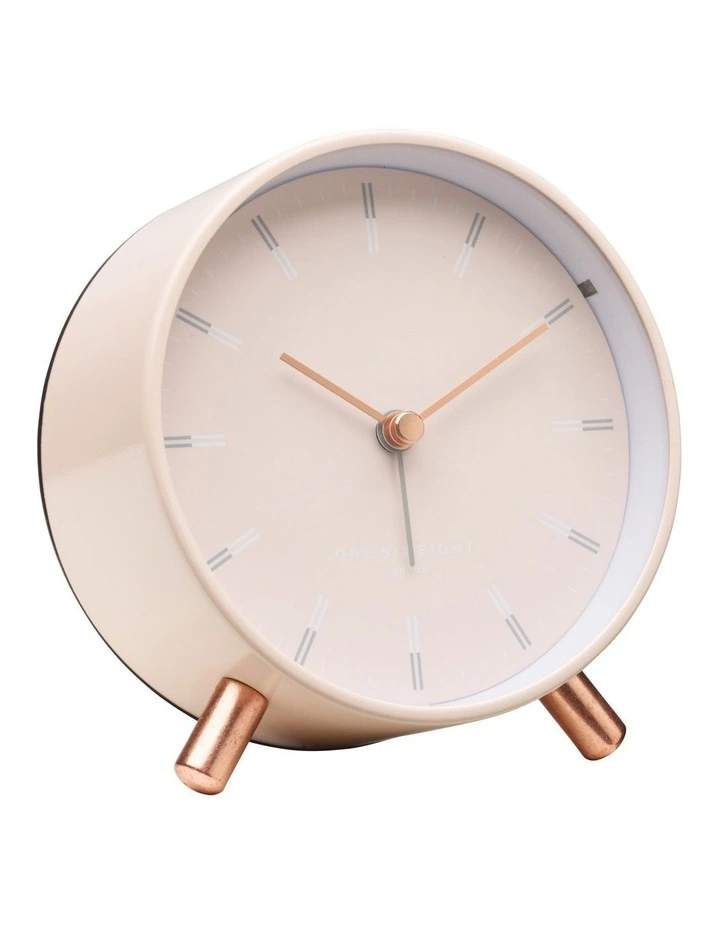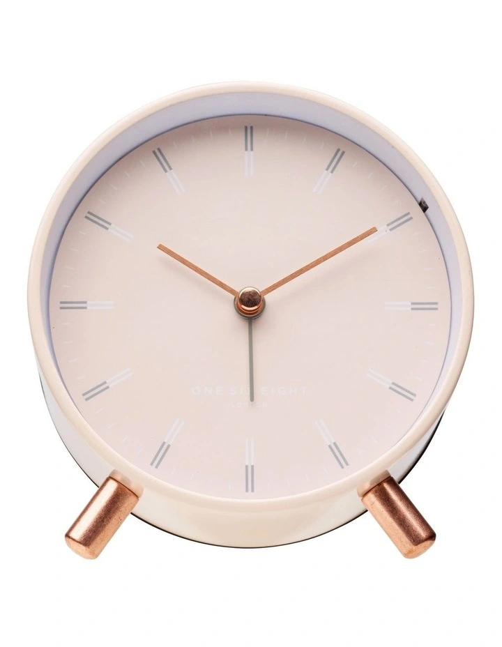With a stunning combination of rose gold metal fittings and a lovely soft blush pink/white, Ellie is probably one of our most feminine clocks. Her interesting Markers are a combination of colours adding to her whimsical look. We think shes more than a bedside alarm clock and will sit just as well as a beautiful desk or table clock.