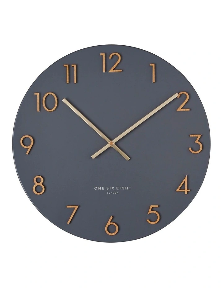 The Katelyn wall clock showcases neat simplicity and an on-trend minimalist vibe, alongside distinctive Art Deco influences. Constructed from pressed metal and enhanced with luxe wooden details, it has a contemporary elegance that will upgrade any interior in a chic way. It is sophisticated with a subtle glamour – a versatile piece and a modern classic. Although created with current interior trends in mind, this design will never go out of style. Available in 40cm and 60cm sizes Available in Charcoal and White Open dial with wooden Arabic numbers High-quality silent quartz movement Industry-leading 5-year manufacturer’s warranty Designed in the UK by One Six Eight London
