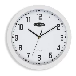 High quality analogue clock that can be wall mounted. Product Features: Large, clear numbers and quality hands. 300mm diameter. White, round face and rim.