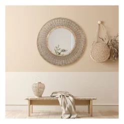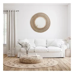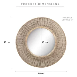 The Moonah Round Rattan Wall Mirror is more than aΒ pit stop to check your look before you run out the door. This large mirror brightens your space, add more detail to the room and visually expand the area it’s placed in. And at 90cm in height, this wall mirror is the perfect wall piece to create a feeling of depth in any room while enhancing the light from lamps, candles and windows.
