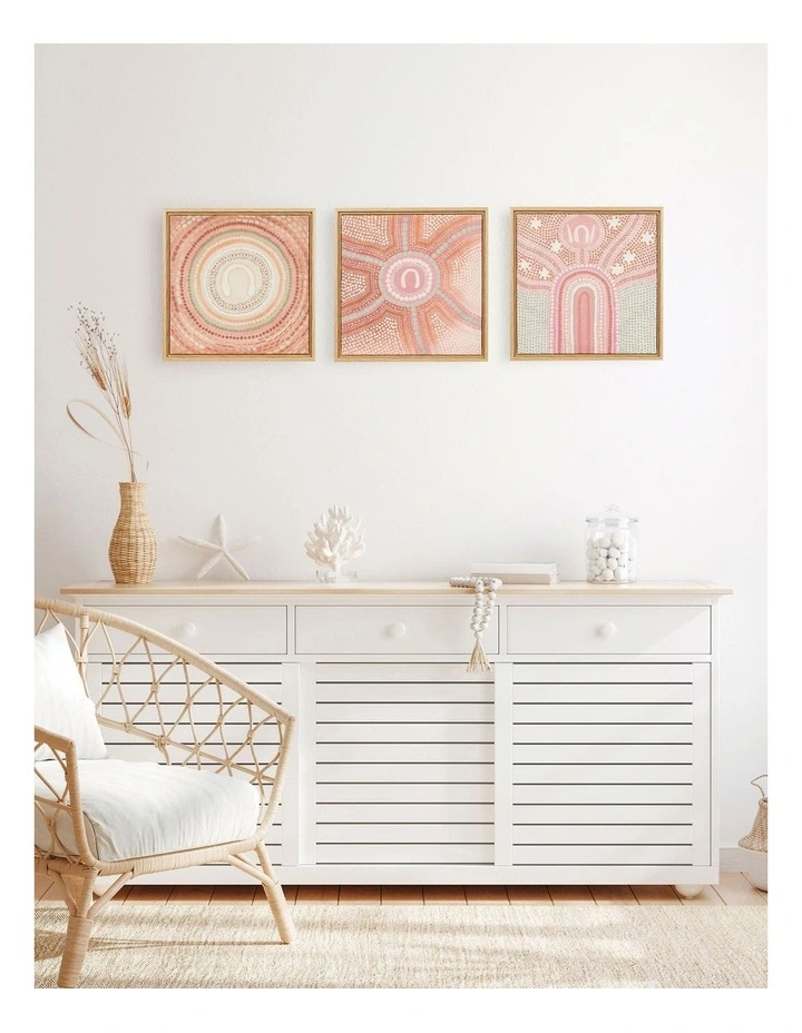 Emma Stenhouses SS23 collection, titled Journey & Nurture, is based on her personal journeys and connections as an Indigenous woman. Emmas story spans across four decades, desert and sea; as she explores the challenges and monuments of her cultural growth, connection to Country and being an Artist. Moving through time and space, from the bush to the beach her stories are formed by her deep relationship to land and guided by strong female role models in her community;Β