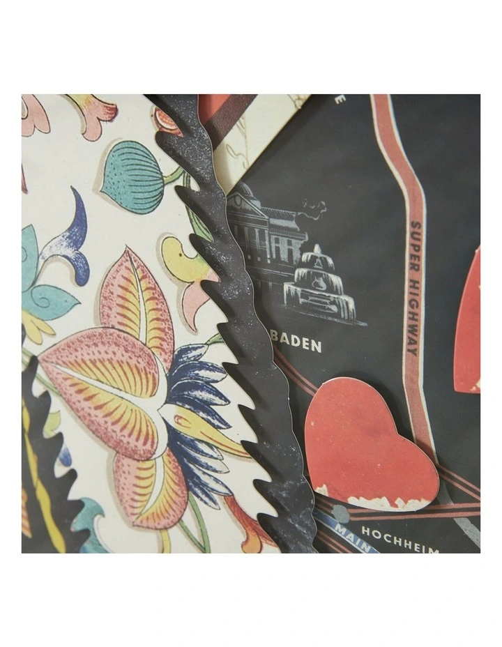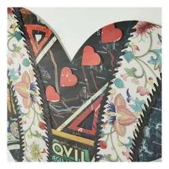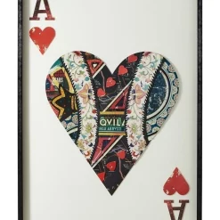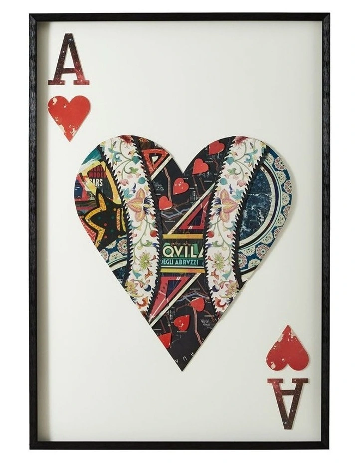 The Ace of Hearts Paper Collage gives a fresh look to the all too familiar card design and features a collage of intricate detailing that gives it a revitalized look. It fills any space with character, especially when paired with the rest of our royal cards paper collage artwork for a hearty royal set.