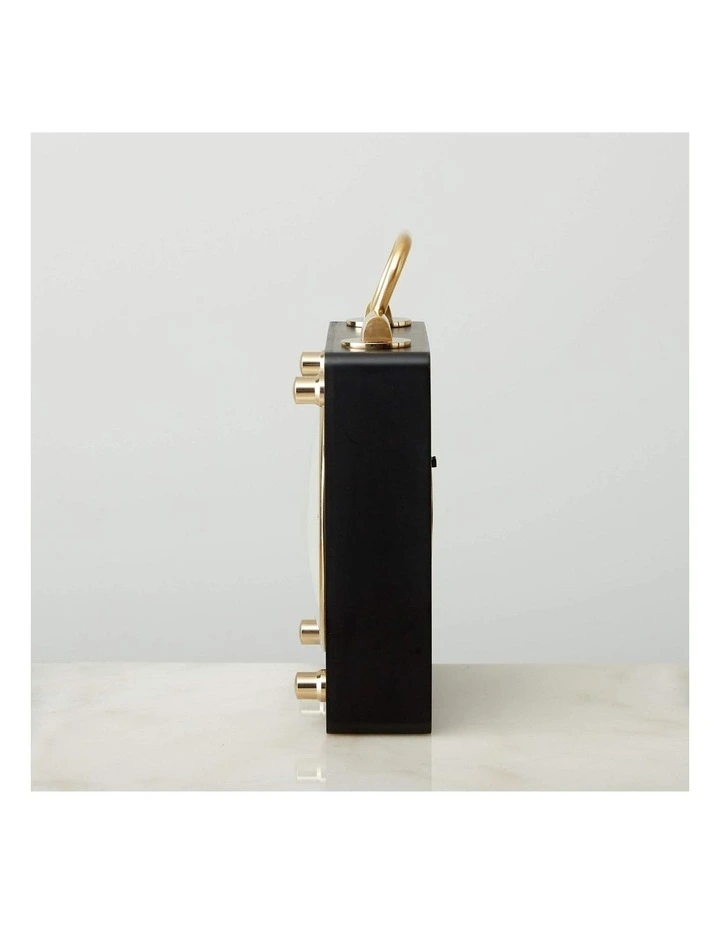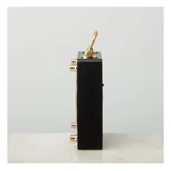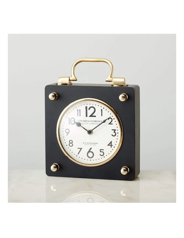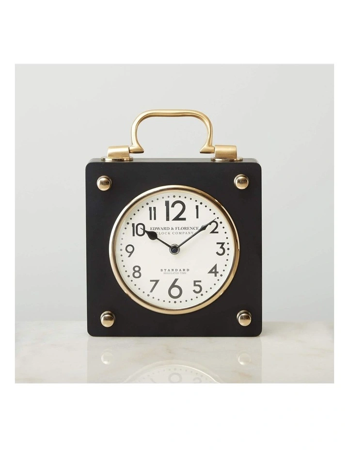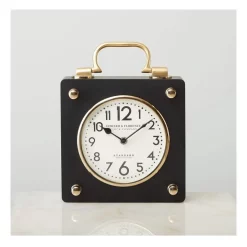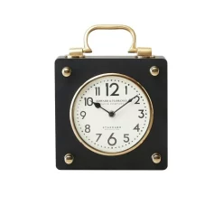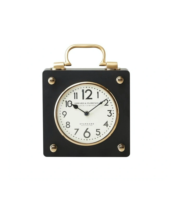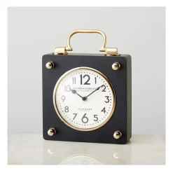 A classical clock featuring an antique brass finish, complete with a gold and black design.