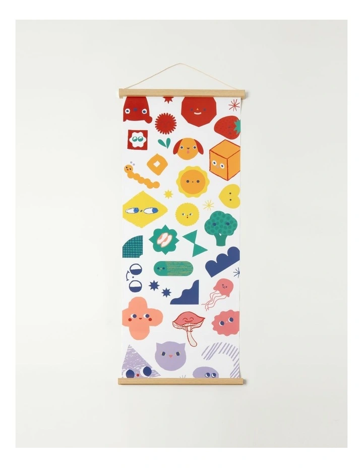 Milkshake Shapes & Faces Wall Hanging 50x120cm in White/Print