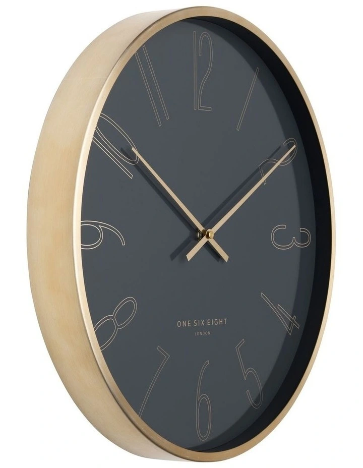 Astrid is part of our bespoke signature metal wall clock collection.Β Β Like many of our wall clocks, she boasts a premium champagne gold finish case and spun metal face with a screen printed dial allowing the numbers to show the Champagne gold of the metal beneath.Β Β Β Her unusual yet simple design with large linear numerals and no added minute markers gives her a whimsical feel with a more considered look than some of our other timepieces.Β Β