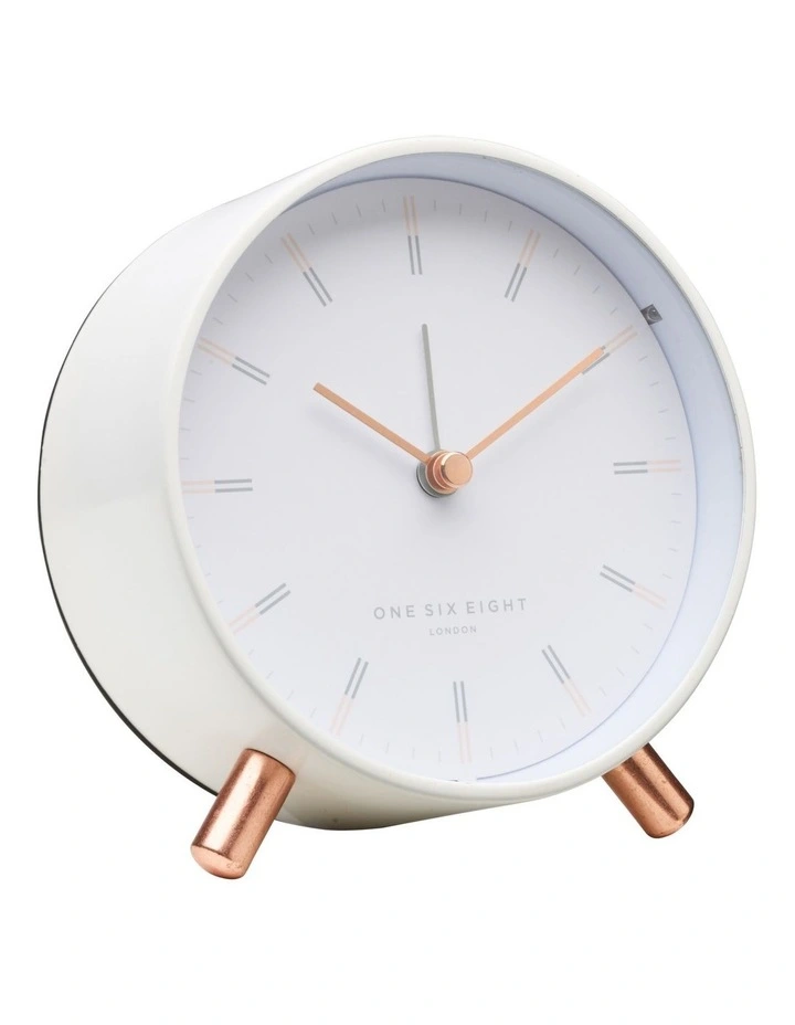 With a stunning combination of rose gold metal fittings and a lovely soft blush pink / white,Β Ellie is probably one of our most feminine clocks.Β Β Her interesting Markers are a combination of colours adding to her whimsical look. We think shes more than a bedside alarm clock and will sit just as well as a beautiful desk or table clock.Β Β