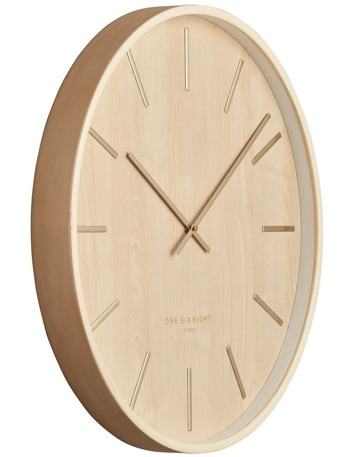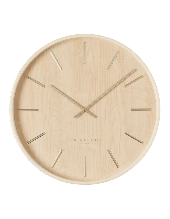 The MarcusΒ wall clock by One Six EIght London, measures a generous 51cm in diameter. Featuring a solid plywood case, gold metal markers and goldΒ handsΒ The Marcus also features a glass lens. The Marcus wall clockΒ comes complete with a silent sweep mechanism and comes with a 5 year warranty.