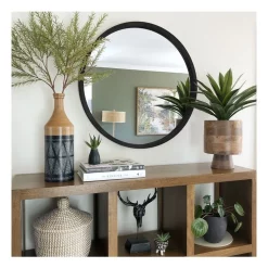 A simple Scandi scheme requires unfussy accessories, so with its modest design, this mirror really fits the bill! It’s a perfect circle of glass encompassed by a solid wood frame with narrow edging and textural grain. Versatile styling is the name of the game here this attractive mirror would enhance any room and can be displayed in a number of on-trend ways. Prop it on a sideboard in a Mid-Century lounge or on a dresser in a modern-country kitchen.