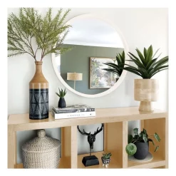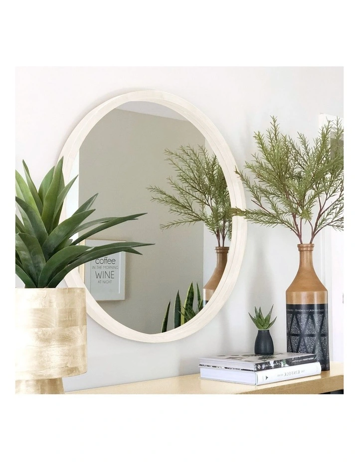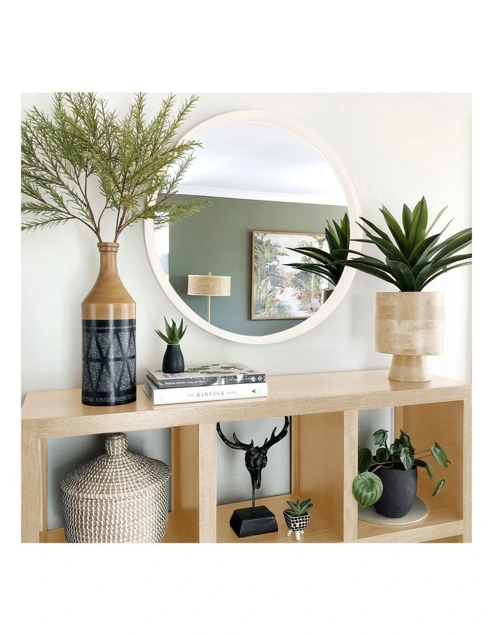 A simple Scandi scheme requires unfussy accessories, so with its modest design, this mirror really fits the bill! It’s a perfect circle of glass encompassed by a solid wood frame with narrow edging and textural grain. Versatile styling is the name of the game here this attractive mirror would enhance any room and can be displayed in a number of on-trend ways. Prop it on a sideboard in a Mid-Century lounge or on a dresser in a modern-country kitchen.