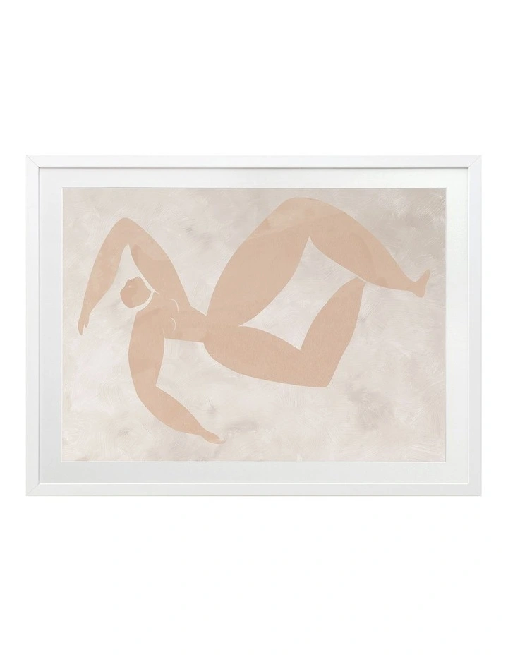 Amelie Cut-Out III Print White Frame – Drawing inspiration from the iconic cut-out style artwork from modern art master Matisse, this artwork features a simplistic, caricature-like portrait of a figure with exaggerated limbs. The colour palette is light and neutral, featuring a warm, nude-pink figure against a textured bone coloured background. This artwork has been created to match with Amelie Cut-Out II, II and IV.FRAMED ART: Giclee printed using archival inks and paper – which means no fading! Framed with a quality moulding and mounted behind museum grade plexiglass. Comes ready to hang.