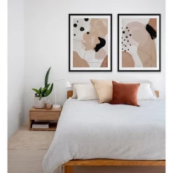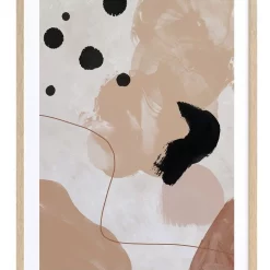 Creme Brulee I Framed Print: An organic, abstract artwork that features overlapping shapes, washes, lines and dots in a warm, neutral colour palette. Pairs with Creme Brulee II.FRAMED ART: Giclee printed using archival inks and paper – which means no fading! Framed with a quality moulding and mounted behind museum grade plexiglass. Comes ready to hang.