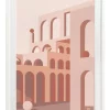 Grand Designs Print Oak Frame – A visually stunning architectural illustration featuring colourblocked archways in a warm, terracotta and clay toned colour palette. FRAMED ART: Giclee printed using archival inks and paper – which means no fading! Framed with a quality moulding and mounted behind museum grade plexiglass. Comes ready to hang.