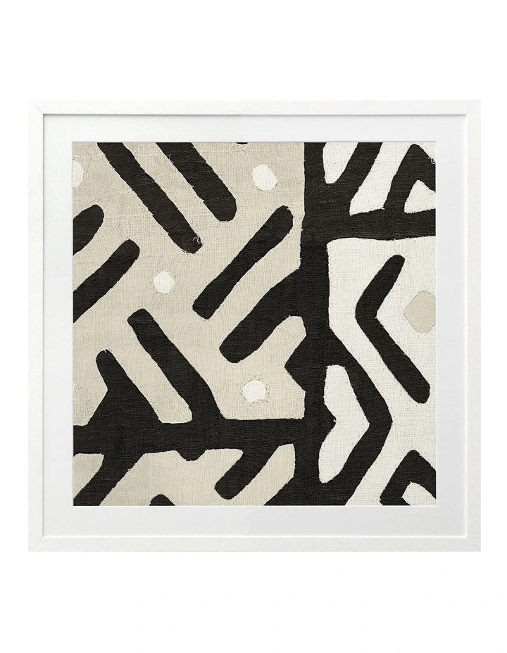 Long Island II Print White Frame – Reminiscent of an intricate tribal pattern, this abstract artwork features intersecting lines and angles in a carefully balanced monochromatic palette of black, cream and beige. Pairs with Long Island I.FRAMED ART: Giclee printed using archival inks and paper – which means no fading! Framed with a quality moulding and mounted behind museum grade plexiglass. Comes ready to hang.