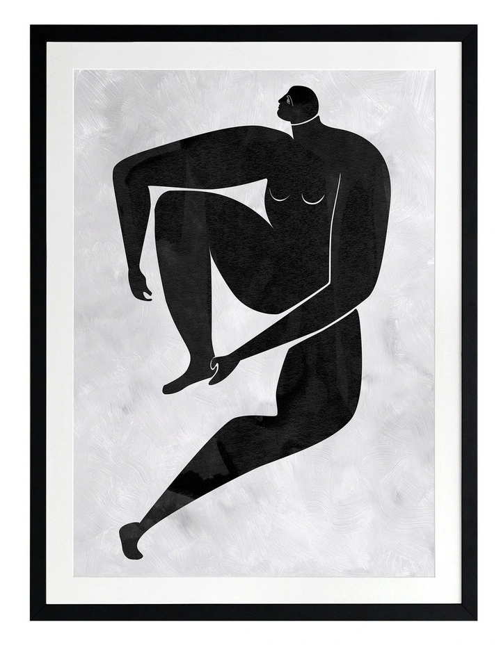 Lydia Cut-Out I Print Black Frame – Drawing inspiration from the iconic cut-out style artwork from modern art master Matisse, this artwork features a simplistic, caricature-like portrait of a figure with exaggerated limbs. The colour palette is bold and monochromatic, featuring a black coloured figure against a light grey textured background. This artwork has been created to match with Lydia Cut-Out II, III and IV.FRAMED ART: Giclee printed using archival inks and paper – which means no fading! Framed with a quality moulding and mounted behind museum grade plexiglass. Comes ready to hang.