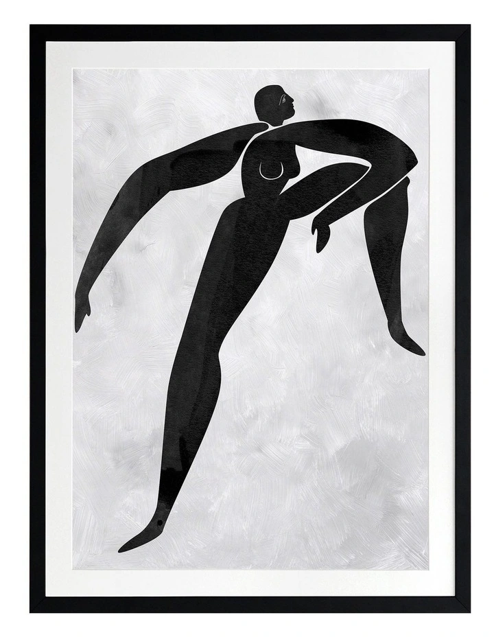 Lydia Cut-Out II Print Black Frame – Drawing inspiration from the iconic cut-out style artwork from modern art master Matisse, this artwork features a simplistic, caricature-like portrait of a figure with exaggerated limbs. The colour palette is bold and monochromatic, featuring a black coloured figure against a light grey textured background. This artwork has been created to match with Lydia Cut-Out I, III and IV.FRAMED ART: Giclee printed using archival inks and paper – which means no fading! Framed with a quality moulding and mounted behind museum grade plexiglass. Comes ready to hang.