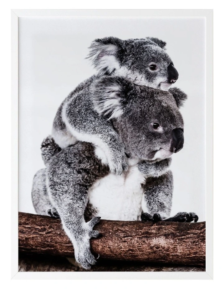 Mama Bear – A photographic image of a baby koala taking a ride on its mother’s back.FRAMED ART: Giclee printed using archival inks and paper – which means no fading! Framed with a quality moulding and mounted behind museum grade plexiglass. Comes ready to hang.