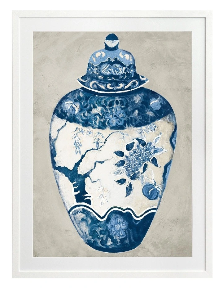 Orient I Print White Frame – Quintessential Hamptons chic comes to life in this incredible art print featuring an intricately painted ginger jar. The blue and white jar features ornate, floral motifs, and is contrasted against a textured grey background. Pairs with Orient II.FRAMED ART: Giclee printed using archival inks and paper – which means no fading! Framed with a quality moulding and mounted behind museum grade plexiglass. Comes ready to hang.