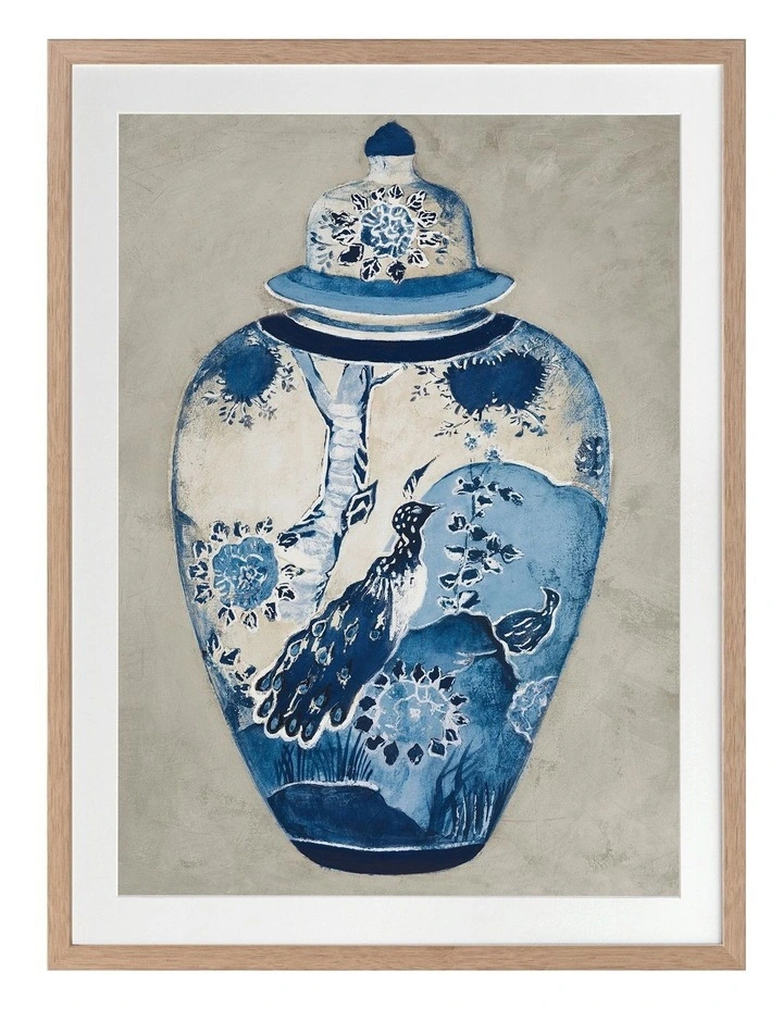 Orient II Print Oak Frame – Quintessential Hamptons chic comes to life in this incredible art print featuring an intricately painted ginger jar. The blue and white jar features ornate, floral motifs, and is contrasted against a textured grey background. Pairs with Orient I.FRAMED ART: Giclee printed using archival inks and paper – which means no fading! Framed with a quality moulding and mounted behind museum grade plexiglass. Comes ready to hang.