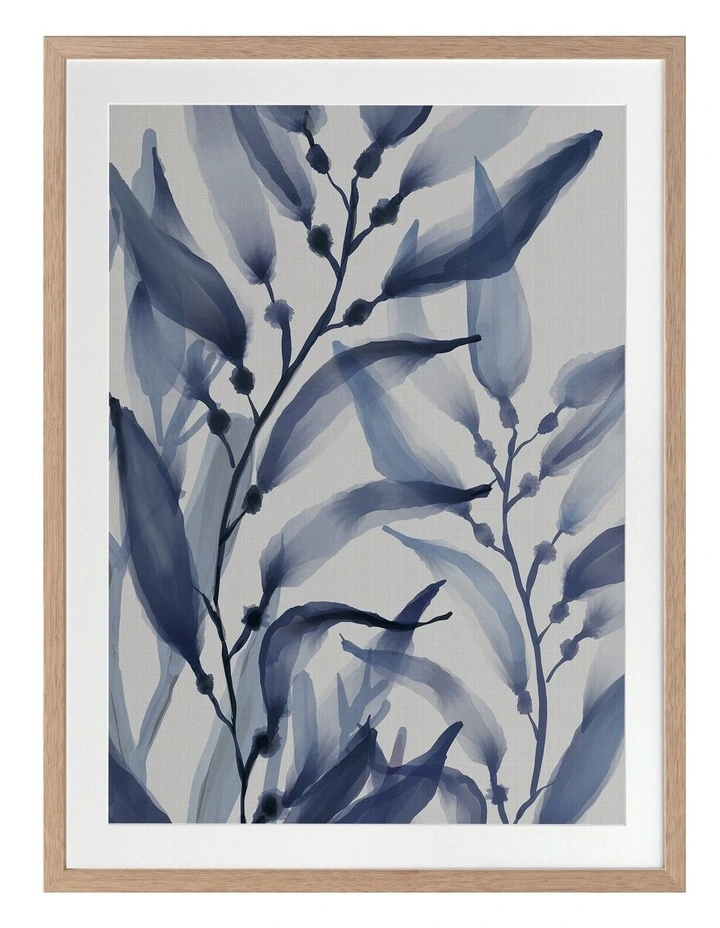Shelter Island I Print Oak Frame – This Hamptons style artwork features soft, delicate indigo blue watercolour sea grass moving across a soft grey background. Pairs with Shelter Island II.FRAMED ART: Giclee printed using archival inks and paper – which means no fading! Framed with a quality moulding and mounted behind museum grade plexiglass. Comes ready to hang.