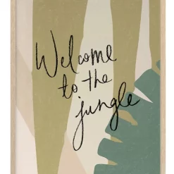 Welcome to the Jungle – A typographic artwork featuring the words ‘Welcome to the jungle’ handlettered across a soft, background of green and beige.FRAMED ART: Giclee printed using archival inks and paper – which means no fading! Framed with a quality moulding and mounted behind museum grade plexiglass. Comes ready to hang.