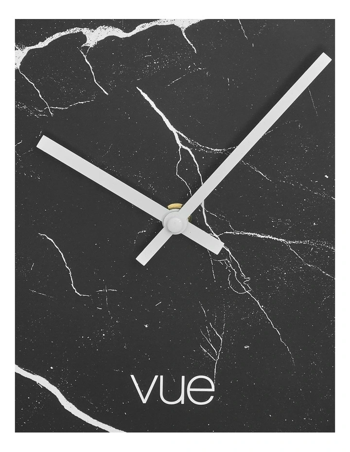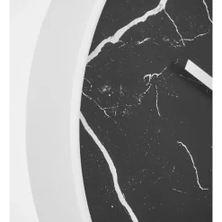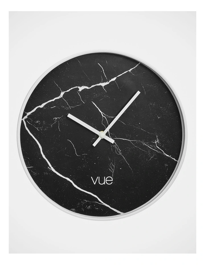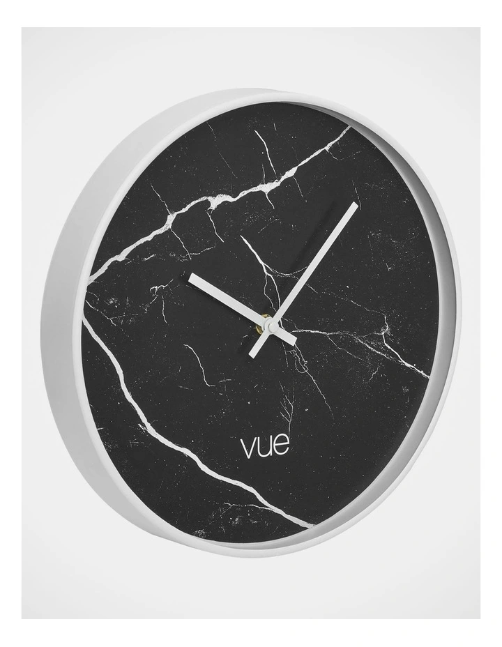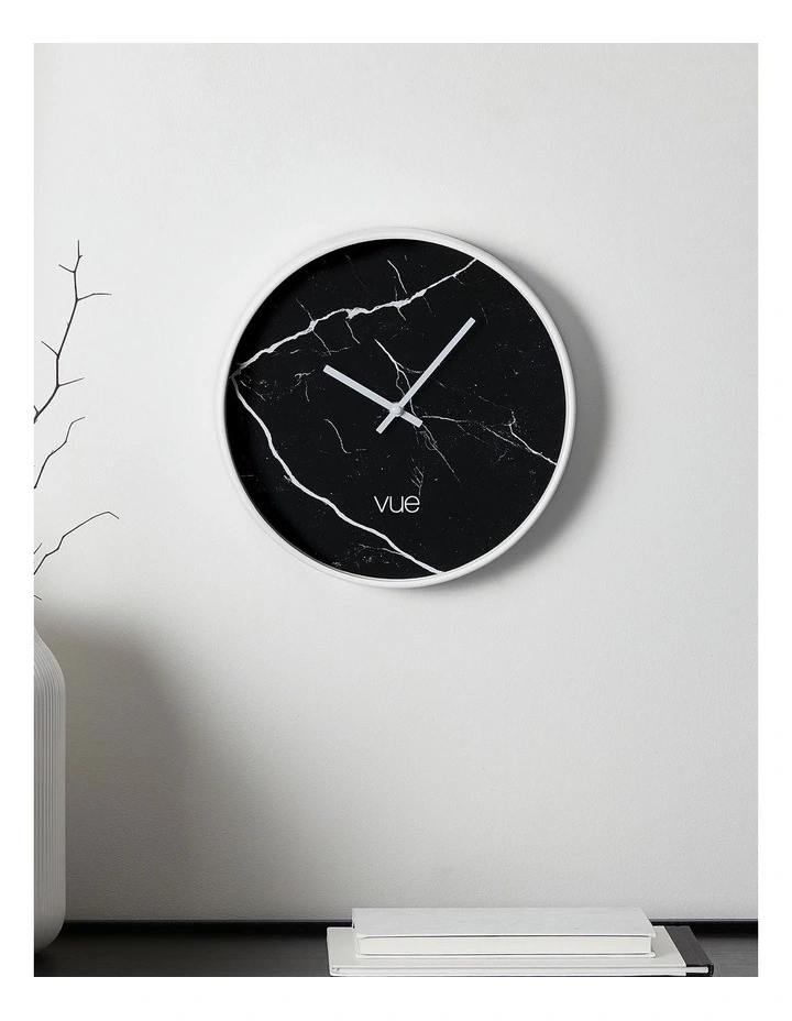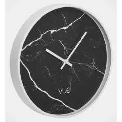 Vue Malvern Silver Frame Marble Clock 30cm in Black/White