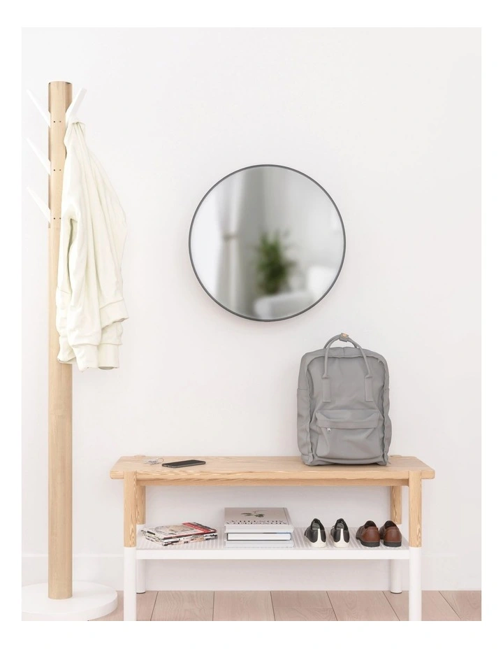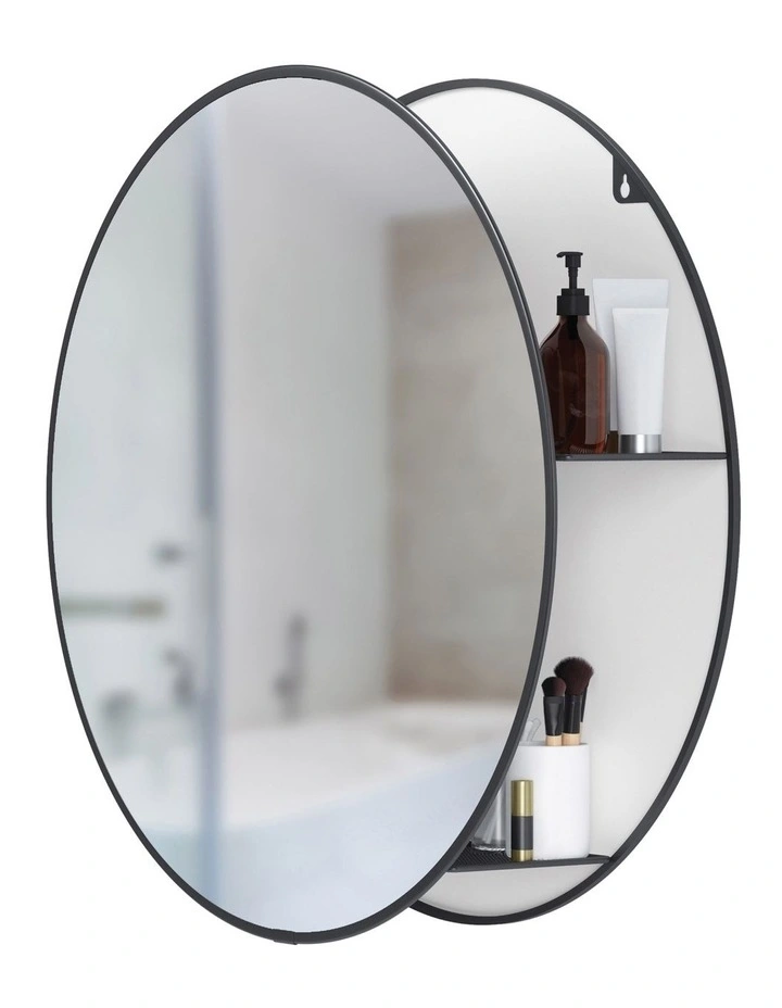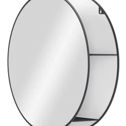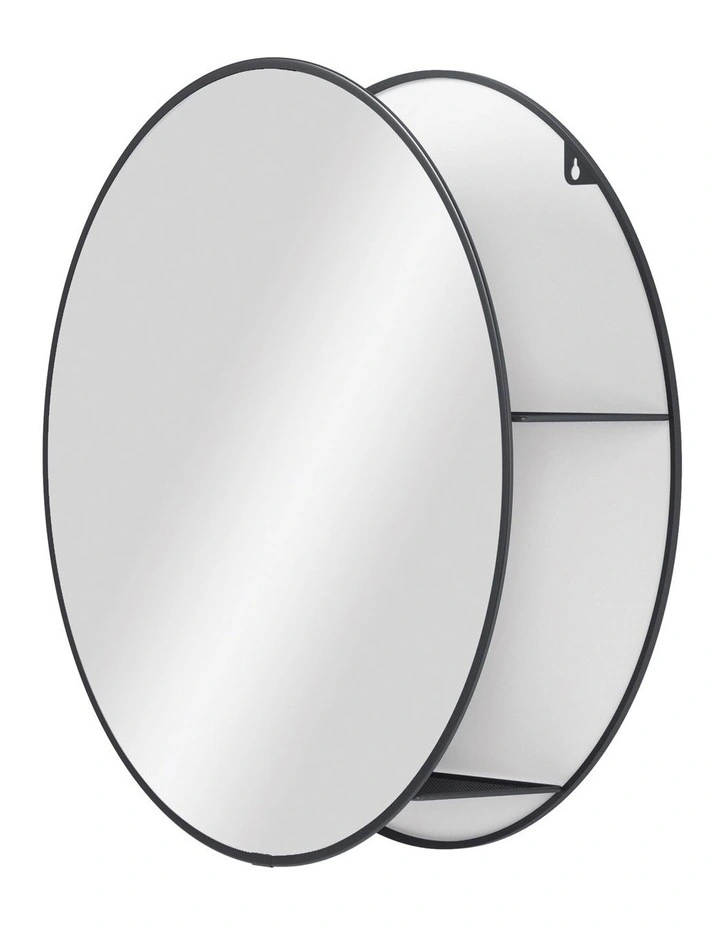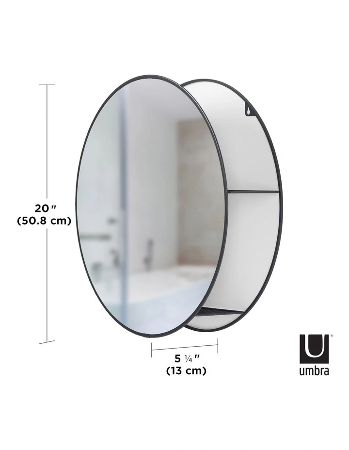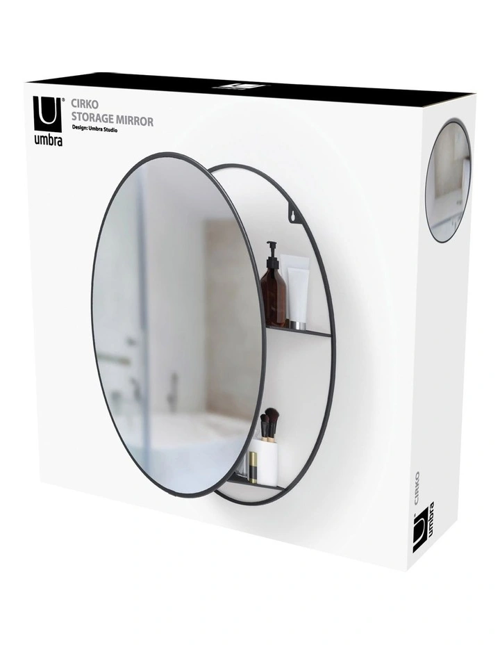Cirko is both a practical and decorative mirror and storage unit that fits well in many spaces. A modern take on the traditional medicine cabinet, Cirko has hidden storage shelves that conceal clutter and organize your belongings all while being stored behind a modern and unique large round mirror. This wall mirror is ideal for small space living as it provides extra storage while bringing light to your space. It can be used in entryways for keys, as a vanity mirror in your bathroom or anywhere else you want extra storage or a beautiful mirror in your home. Its large circular design effortlessly draws in light and opens up space, all while keeping necessities in arms reach and out of sight.